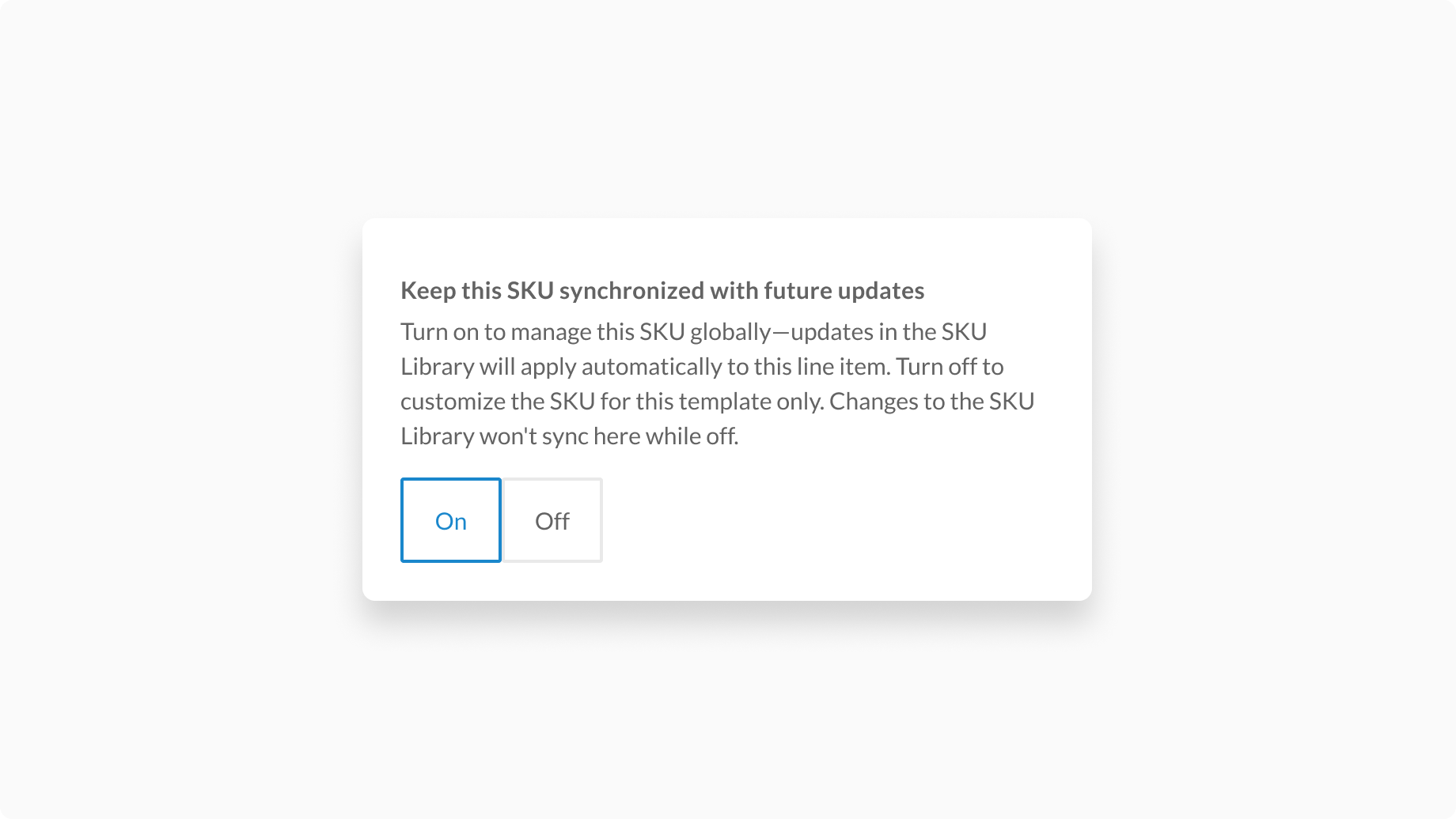 When enabled, any changes made in the SKU Library automatically update the SKU across all applicable templates.