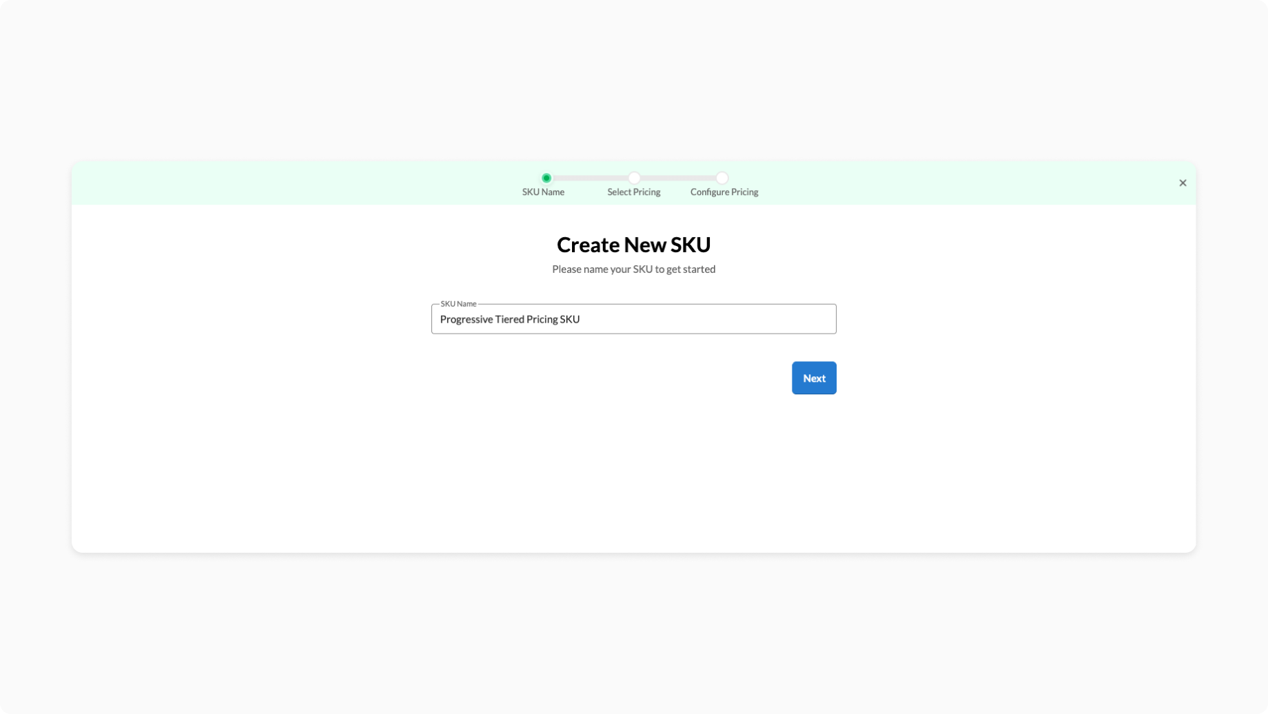In the SKU creation wizard, first define a SKU Name.
