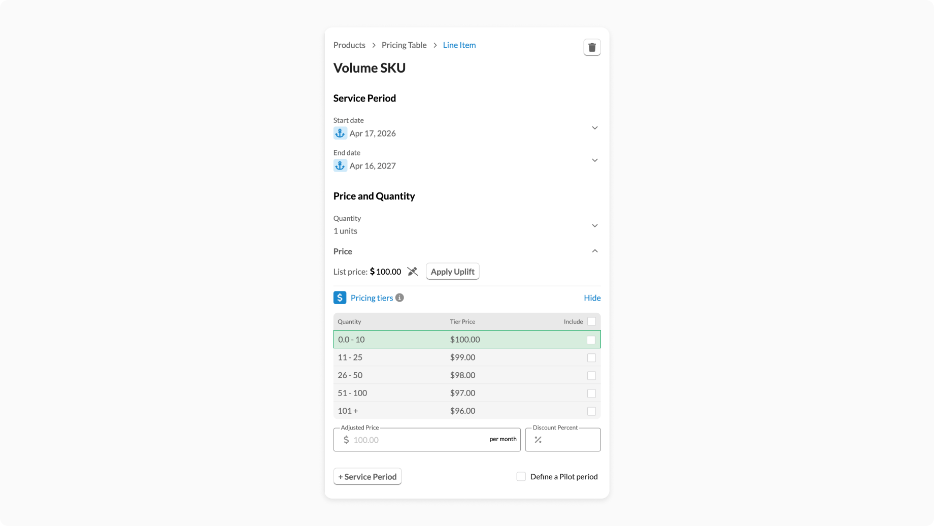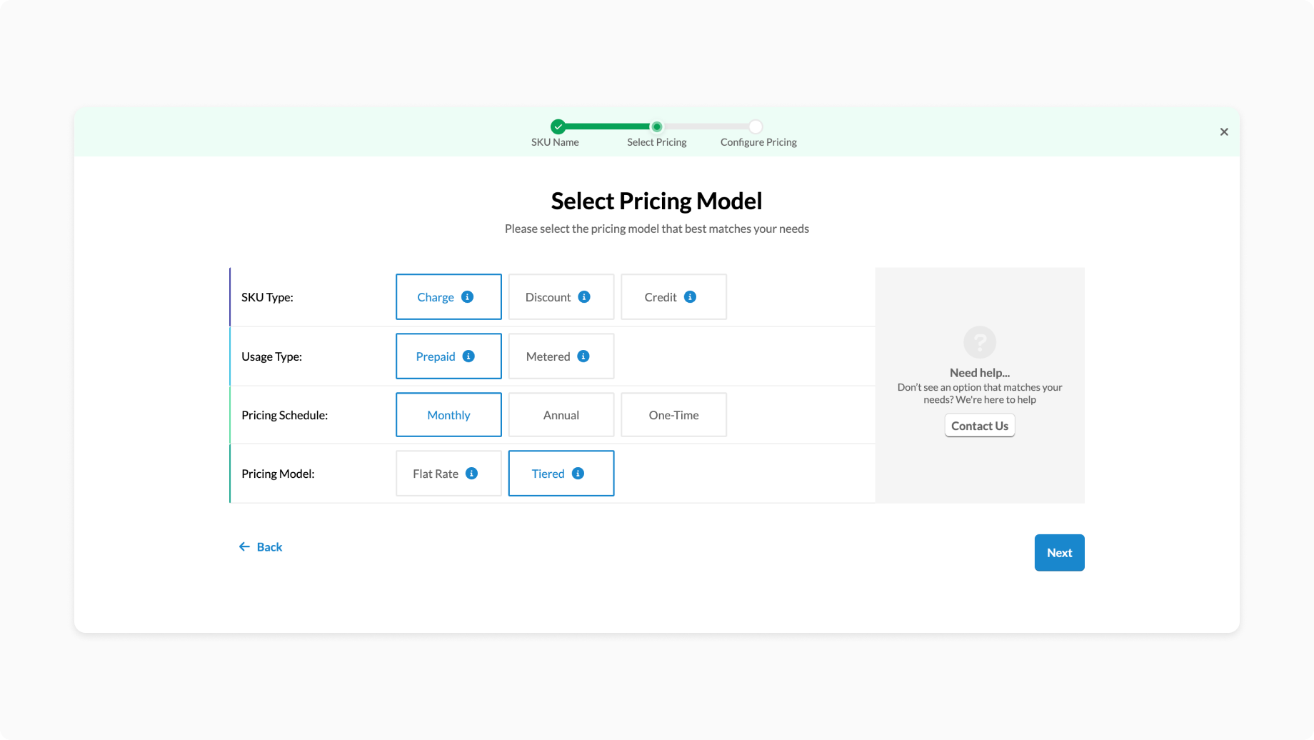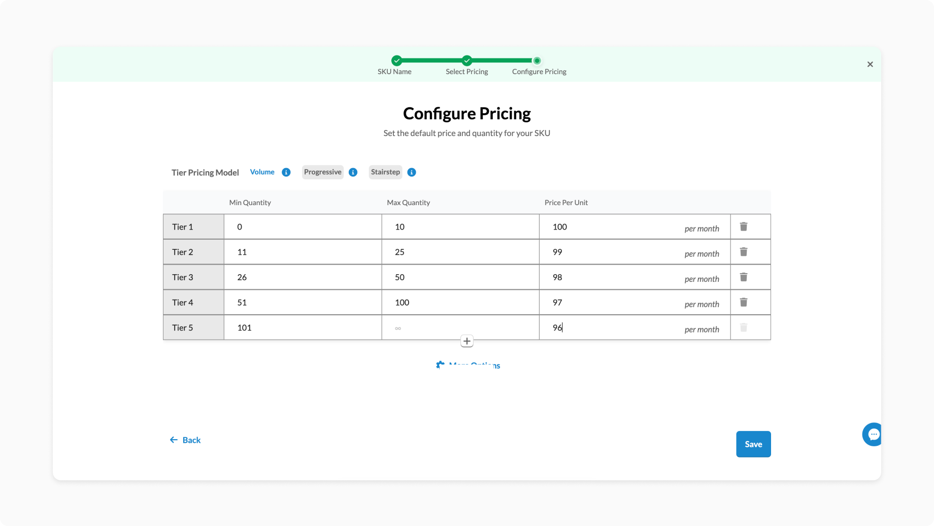 - Repeat steps 1 - 3 for each of the tiers in your SKU’s pricing model.